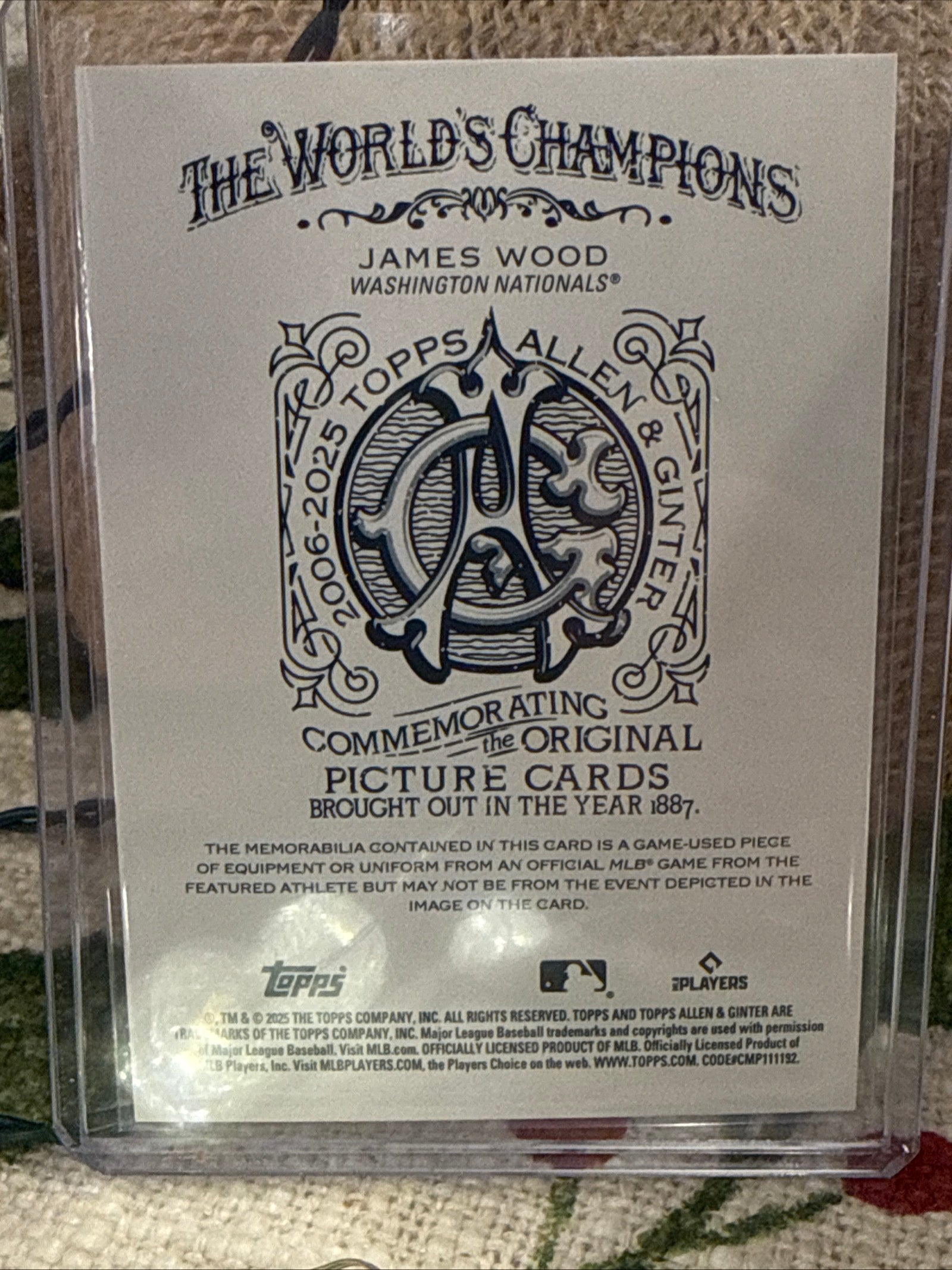 2025 Topps Allen & Ginter James Wood RC Relic # 2/25 Nationals Topps Rookie