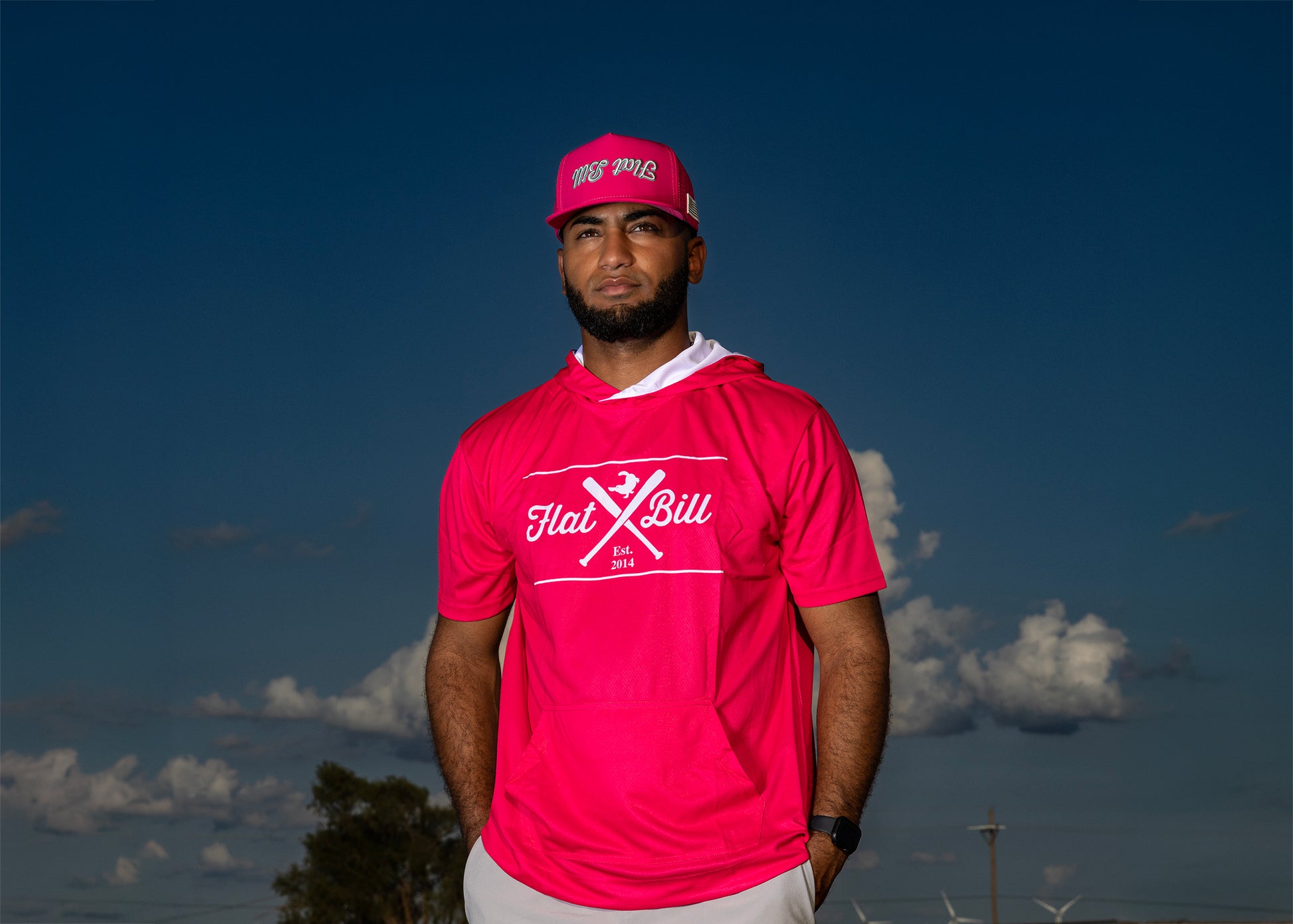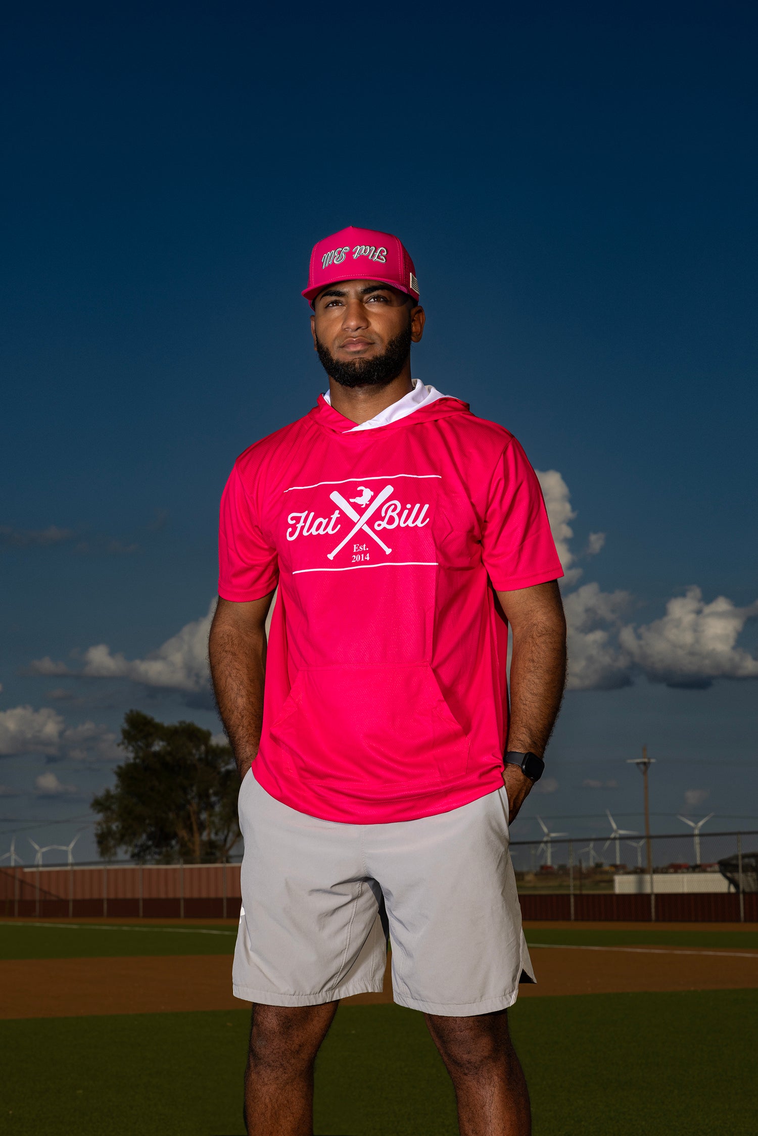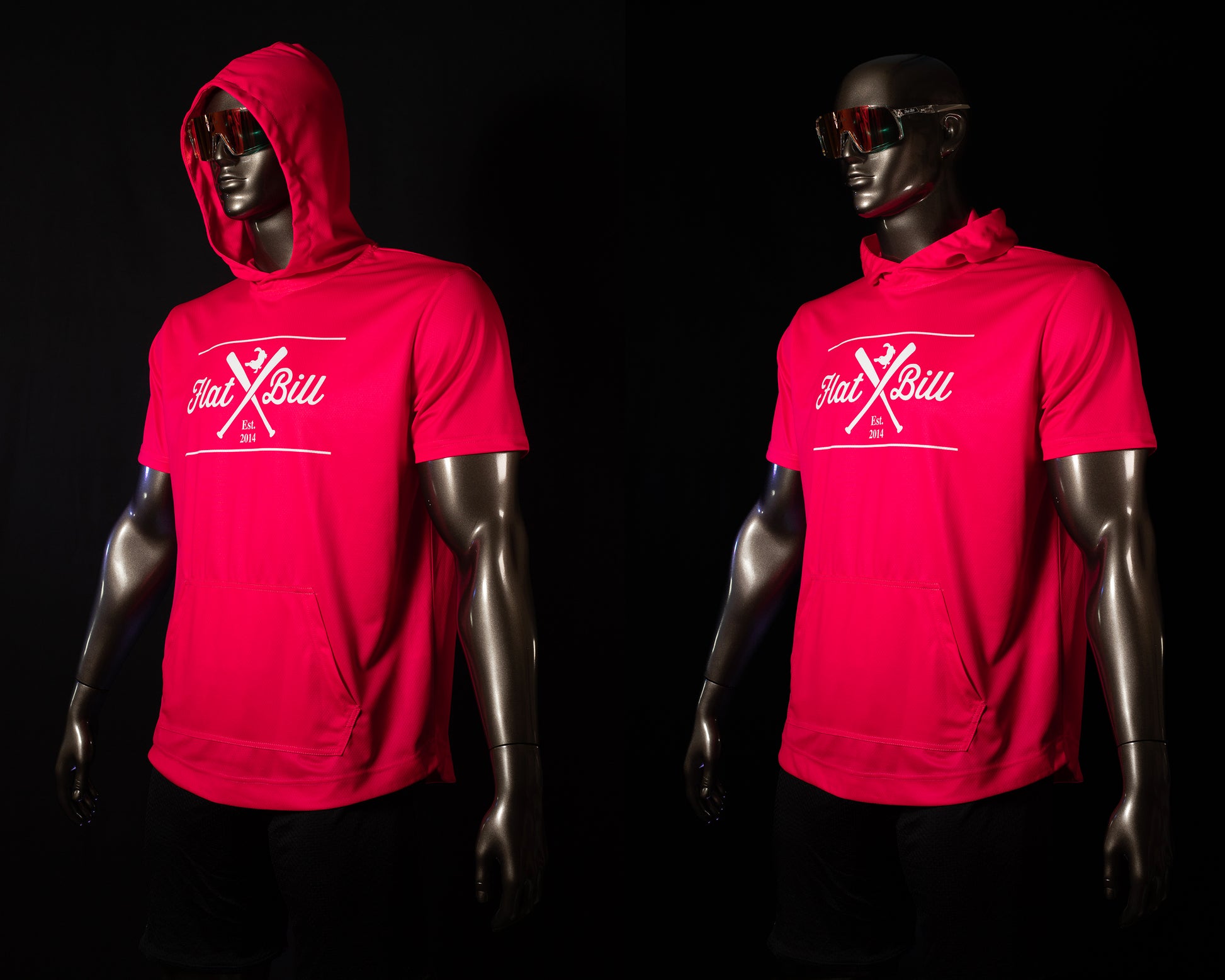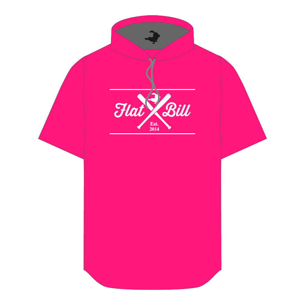 Discover your new essential shirt with the flat bill Hot Pink and White Premium Sublimated Short Sleeve Hoodie, designed for comfort and vibrant style.