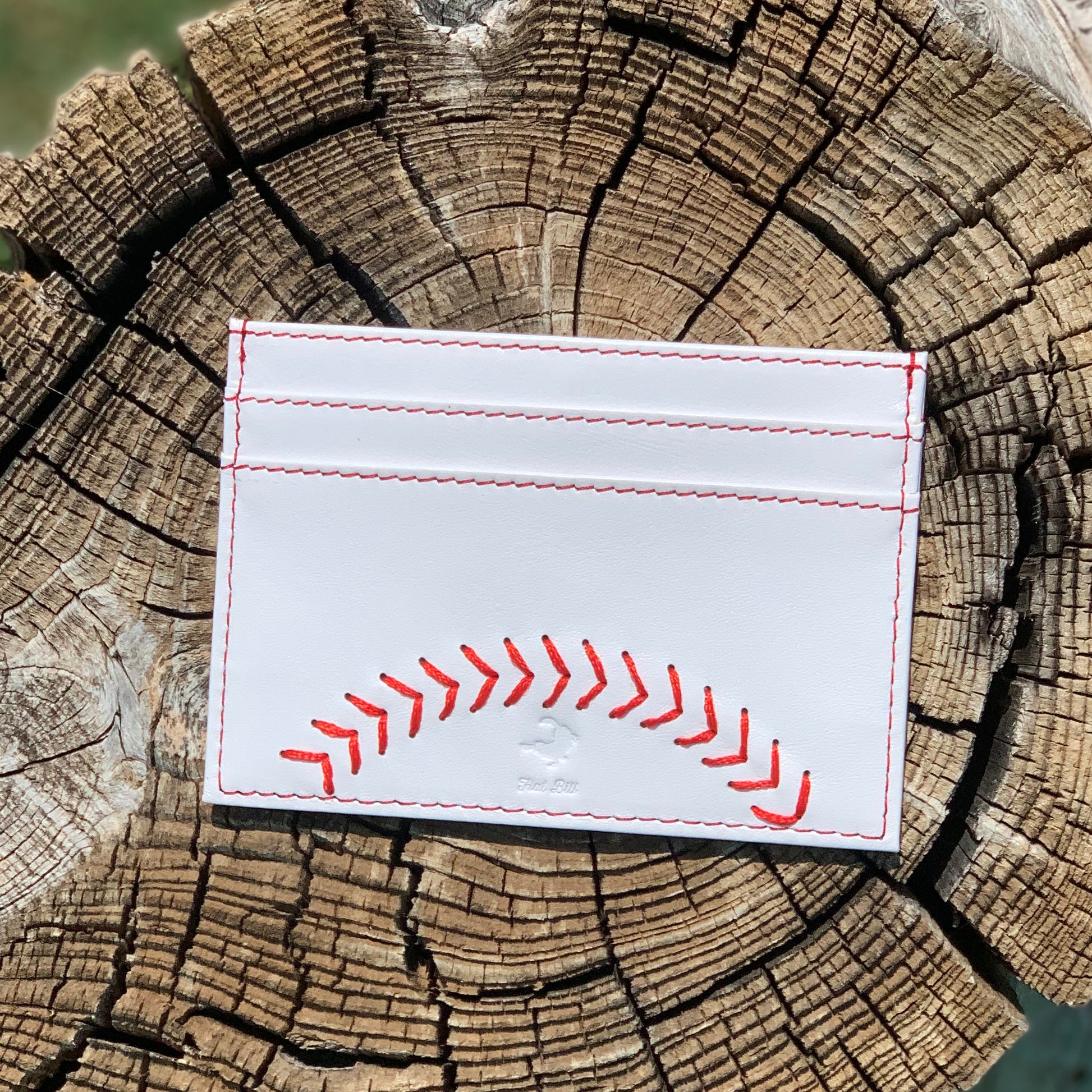 front pocket minimalist baseball wallet. Comes with baseball stitching on the front.
